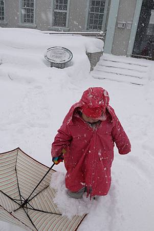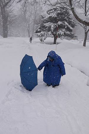 當壁虎先生跟苦命女在對著美麗的建築狂拍猛拍時,大阪君跟京都妹在做什麼呢?拿著雨傘玩雪,分配得剛剛好,一人一把,京都妹有了哥哥這個冒險犯難的玩伴,就比較沒有抱怨跟滑倒了。