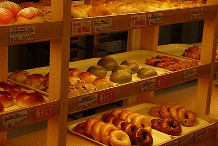 苦命女也算是個對吃有點挑剔的人,不過不是我在說,這間麵包店的麵包還不錯吃呢!熱騰騰的,剛出爐沒多久就賣完了,店裡的小姐又親切,笑容跟麵包一樣可愛。我們四人買了六個麵包,才六百多日幣,這個價錢在日本街頭的麵包店一般只能買到三個。四個飢餓的台灣人就站在麵包店外面把六個麵包一下子吃個精光。
